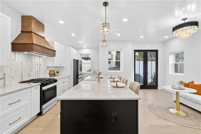 Discover this extraordinary 2,391 square foot residence at 516 S Main St, where European elegance meets contemporary luxury. This stunning 4-bedroom, 3.5-bathroom home showcases a complete renovation featuring soaring ceilings and architectural black hardware throughout. Designer chandeliers illuminate each carefully appointed space, complemented by custom finishes and an inviting electric fireplace. The gourmet kitchen captivates with Samsung Bespoke appliances and an impressive 8-foot quartz island adorned with matte gold fixtures. Gorgeous tiled bathrooms extend to the ceiling, while the spacious primary bedroom boasts an spa-inspired bath and third floor laundry room. Recent upgrades include new high-efficiency systems, 200-amp electrical service, grand windows, and doors. Outside, enjoy the private courtyard sanctuary surrounded by new privacy fencing and a two-car detached garage with large storage room underneath. 516 S Main is meticulously crafted luxury city living!!