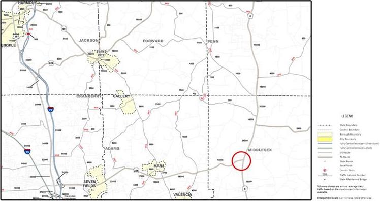 Fantastic commercial property at the high traffic intersection of Route 8 & Route 228! This lot is part of the Middlesex Crossing Development. The 1.33 acre lot has 0.85 acre buildable pad. The proposed use for this property is for a Professional Office, however other uses will be considered! There are renderings attached for the proposed use. Utilities available on site. Select this lot, build your business, and enjoy the traffic that this specific property will bring! Full development brochure available. LOT TO BE SOLD AS SUBJECT TO SUBDIVISION as Lot C-2D